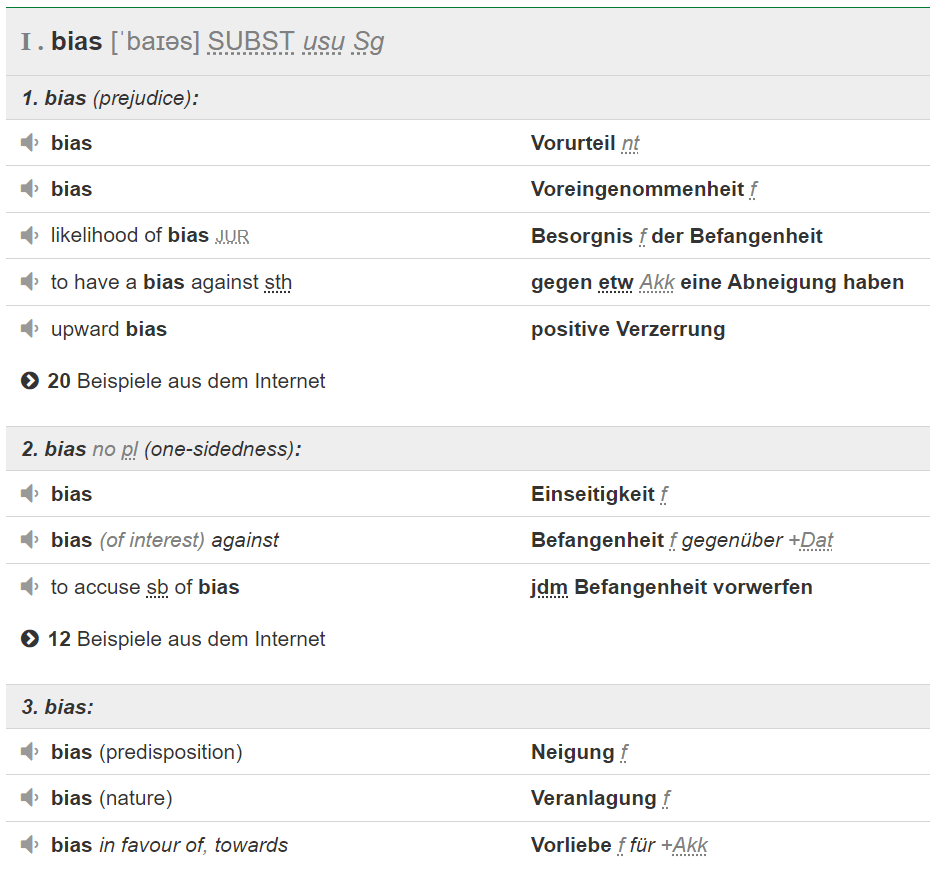 Worum geht es im Kern – zumindest so, wie ich es verstanden habe? Täglich sind Entscheidungen zu treffen. Im vorliegenden Buch vor allem mit Bezug auf Richter und das Versicherungswesen, aber diese Entscheidungen – das wird ebenfalls im Buch deutlich – beziehen sich auf alle Bereiche. Beruflich, wie auch privat. Das unsere Entscheidungen und Urteile nicht immer objektiv sind, sondern immer einer gewissen Subjektivität unterworfen sind, zeigt sich schon allein darin, dass es immer größere Bemühungen und Bestrebungen, Methoden und Möglichkeiten gibt so genannte „Bias“ auszuschließen. Beziehen wir uns rein auf die Übersetzung, so schlägt PONS u.a. diese Übersetzungen vor: